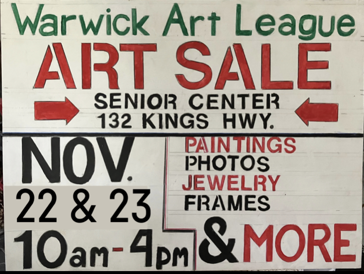 The Warwick Art League’s Art Sale featuring paintings, photos, jewelry, frames and MORE is taking place November 22 and 23 from 10am – 4pm at the Warwick Senior Center, 132 Kings Highway, Warwick, NY. If you would like to participate in this event, please call Sarah McHugh at (845) 544 – 8747 to reserve a table.